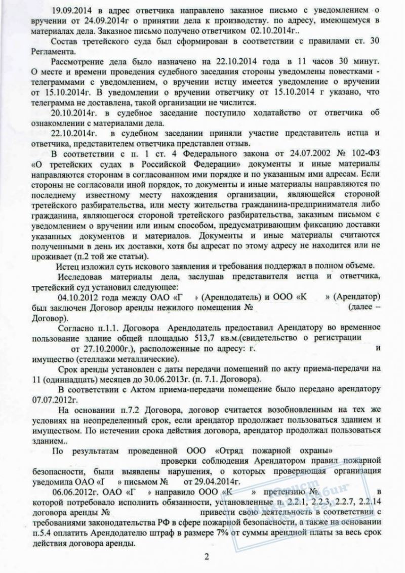 Однако, при внимательном изучении дела оказалось, что достоверность результатов проверки вызывает серьезные сомнения. Юрист также подготовил убедительные доказательства того, что ООО «К» добросовестно выполнял условия эксплуатации арендуемого помещения.