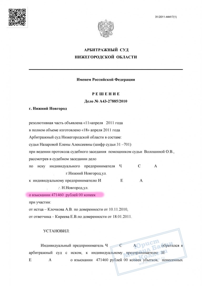 Суд удовлетворил исковые требования ИП Ч. в полном объёме. С ИП И. взысканы: