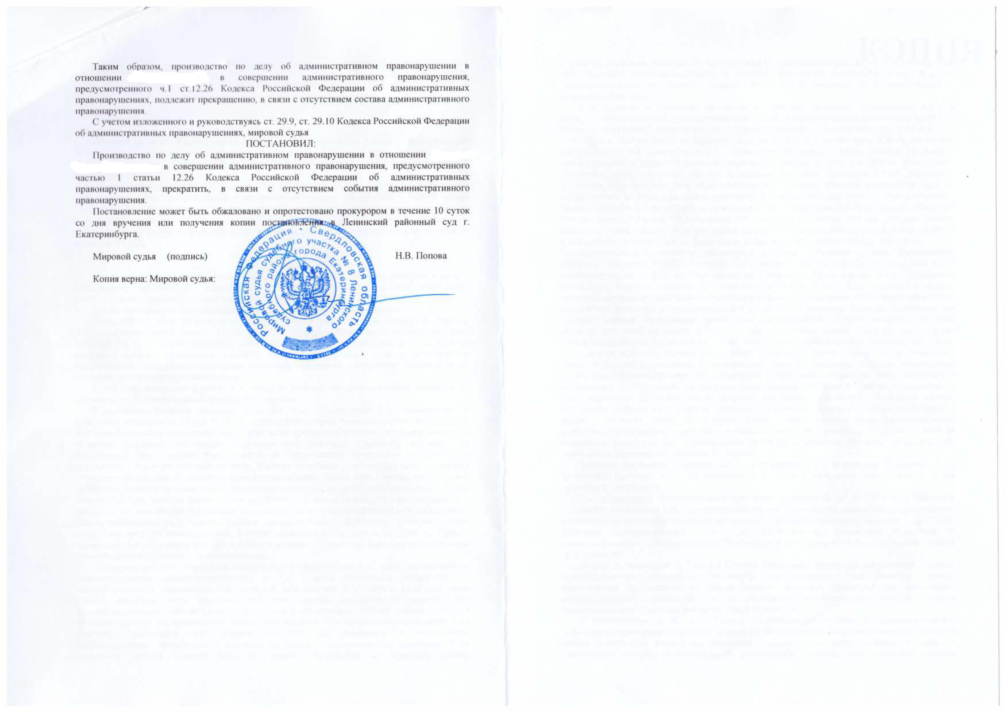 Мужчина обратился за юридической помощью в “Оригинальное решение”. Клиенту грозило лишение водительского удостоверения на срок до двух лет и 30 тысяч рублей штраф. Судебное разбирательство длилось несколько месяцев, результатом стало полное и бескомпромиссное прекращение дела об административном правонарушении. Наши юристы смогли доказать, что наш клиент не управлял автомобилем и водителем в тот злополучный вечер не являлся. ДТП произошло без его участия… Был проделан огромный объем работы, чтобы преодолеть обвинительный уклон правосудия по такой категории дел, но опыт и знания наших юристов позволили отвернуть меч Фемиды от нашего доверителя.