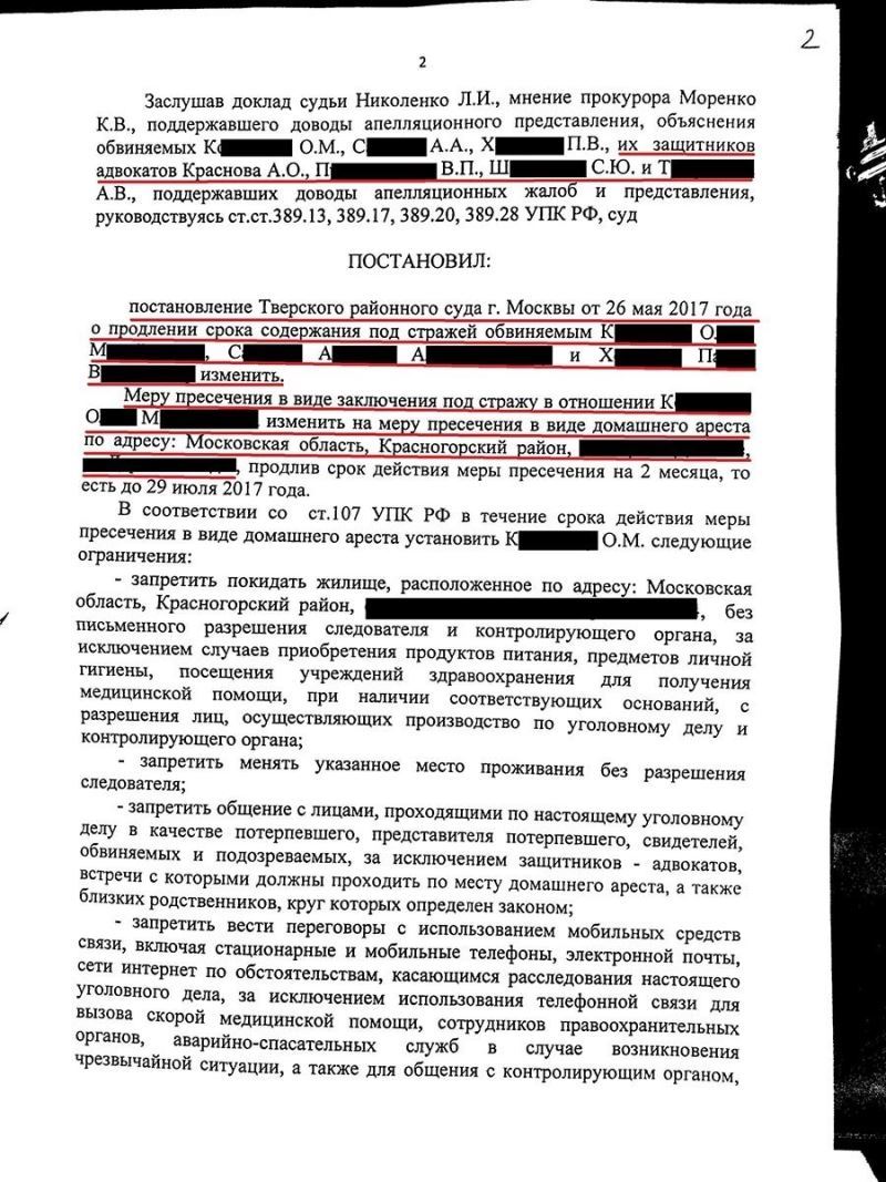 Адвокат выехал в Бутырский СИЗО (ФКУ СИЗО-2 УФСИН России по г. Москве) к подзащитному, провел беседу, выяснил обстоятельства дела. После чего были направлены адвокатские запросы для формирования материалов адвокатского производства по уголовному делу и доказательственной базы. Далее адвокатом были поданы жалобы в Прокуратуру и суд на допущенные в ходе предварительного следствия процессуальные нарушения прав подзащитного С.В конечном итоге была сформирована правовая позиция по делу и на продление срока содержания под стражей адвокатом была подана апелляционная жалоба в Московский городской суд.